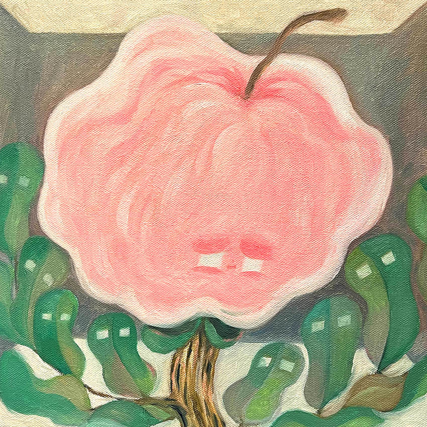 Her recent work reflects the experience of relocation, exploring emotional states such as uncertainty, resilience, and adaptation. Using recurring motifs like mountains, flowers, fruits, and soft palettes, she creates visual metaphors for the tension between inner struggles and growth.